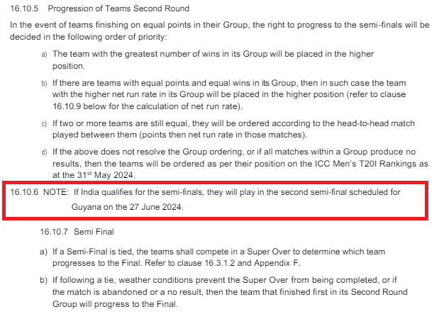 කෙසේ වෙතත්, ඉන්දියාව අවසන් පූර්ව වටයට සුදුසුකම් ලැබුවහොත් මෙය යම් වෙනකට ලක් වනවා. එහිදී ඉන්දියාව සුපිරි 8 වටයේ දී සිය කාණ්ඩයේ කුමන ස්ථානයක් දිනා ගත්ත ද (1 හෝ 2), ඔවුන් ක්රීඩා කිරීමට නියමිතව ඇත්තේ අනිවාර්යයෙන්ම දෙවැනි අවසන් පූර්ව තරගය සදහායි.