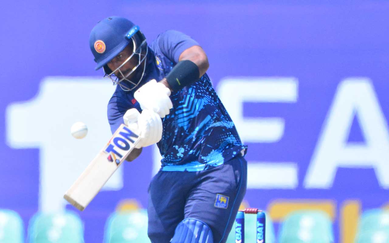 පන්දු යැවීම චමිදු විජේසිංහ ලකුණු 63 කට කඩුලු 3ක් බිද හෙලුවා.