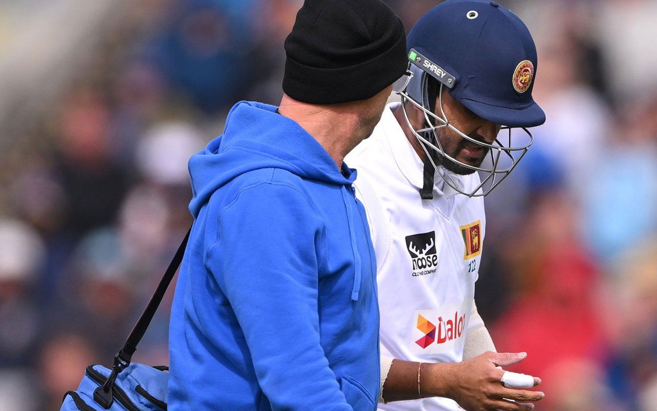 මැන්චෙස්ටර්හි පැවැත්වෙන තරගයේ තෙවැනි දිනය වන අද(23) දිනයේ දී ශ්රී ලංකා දෙවැනි ඉනිම වෙනුවෙන් පන්දුවට පහර දෙමින් සිටියදීයි පන්දුවක් වැදීම හේතුවෙන් ඔහුගේ දකුණු අතේ ඇගිල්ලක ආබාධයක් සිදු වුණේ.