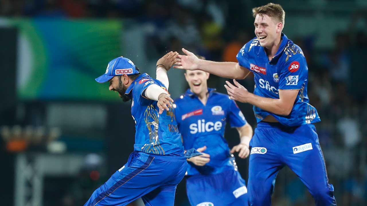 තරගයේ පළමුව පන්දුවට පහරදුන් මුම්බායි ඉනිම වෙනුවෙන් ආරම්භක පිතිකරුවන් වූ රෝහිත් ෂර්මා ලකුණු 11 ක් හා ඉෂාන් කිෂාන් ලකුණු 15 ක් රැස් කළා. අනතුරුව තෙවැනි කඩුල්ලට පන්දු 38 කින් 66 ක වේගවත් සම්බන්ධතාවයක් ගොඩ නැගීමට කැමරන් ග්රීන් හා සූර්යකුමාර් යාදව් සමත් වුණේ මුම්බායි කණ්ඩායම ඉහළ ලකුණු සංඛ්යාවක් කරා රැගෙන යාමට අවශ්ය පදනම සකස් කරමින්.