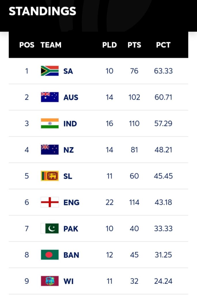 මේ වන විට එංගලන්තය සහ නවසීලන්තය 2023-25 ලෝක ටෙස්ට් ශූරතාවලියේ සියලු තරගාවලි ක්රීඩා කර අවසන්.