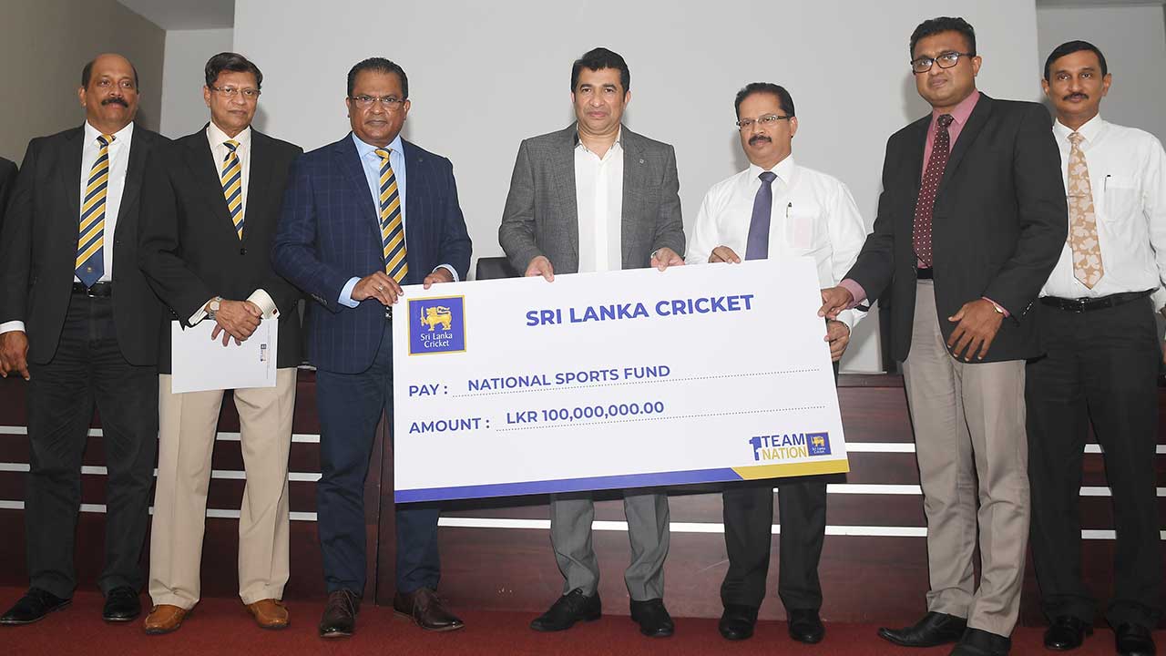 එමෙන්ම ජාතික ක්රීඩා අරමුදලට රුපියල් මිලියන 100 ක මුදලක් ද ශ්රී ලංකා ක්රිකට් ආයතනය විසින් අද ලබා දුන්නා.