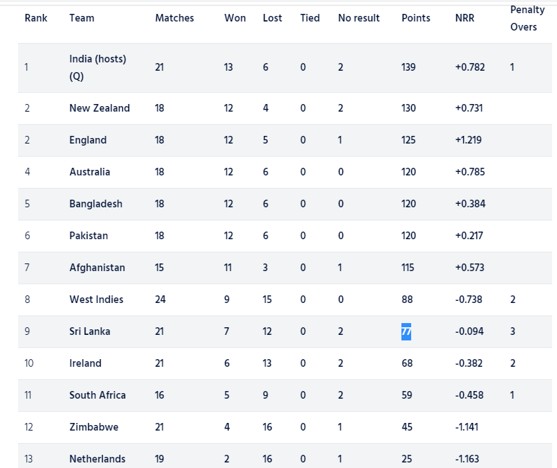 ශ්‍රී ලංකාව තවමත් ලෝක කුසලානයට සෘජුව සුදුසුකම් ලැබීමේ සටනේ ; ප්‍රසාද ලකුණු සටහන මෙන්න