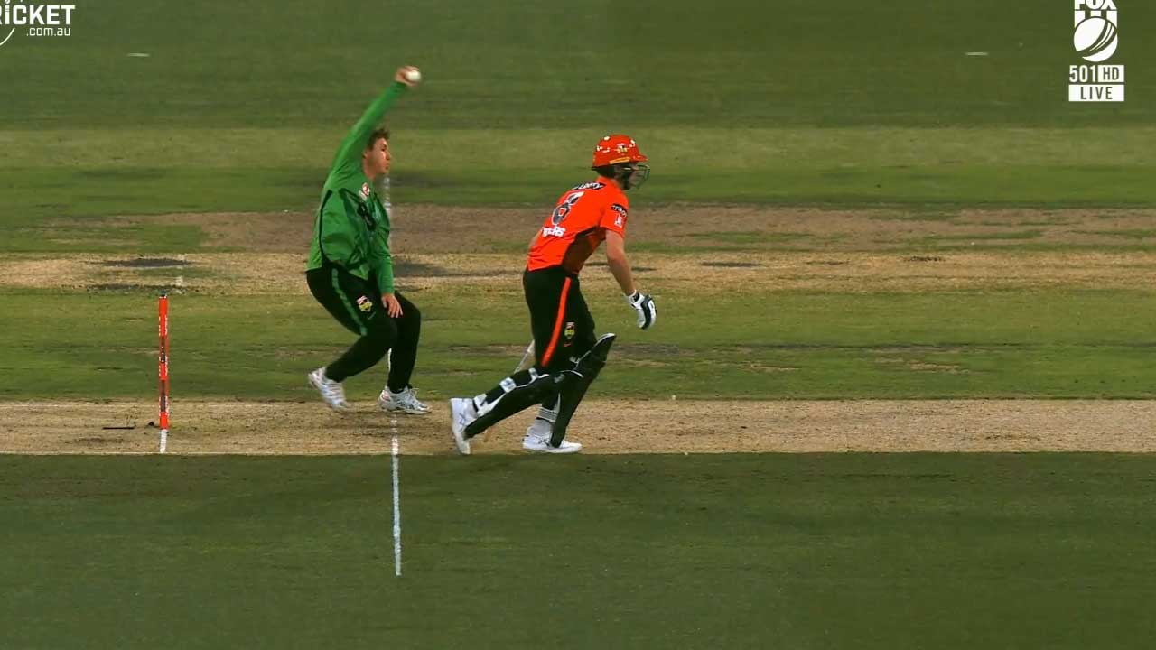 ඉනිමේ අවසන් පන්දුවාරය ඇඩම් සම්පා විසින් යොමු කළ අතර, එම පන්දුවාරයේ 5 වැනි පන්දුව යොමු කිරීමට පෙරයි ඔහු විසින් පන්දු යවන අන්තයේ රැදී සිටි ටොම් රොජර්ස් දුවද්දී දවා ගැනීමට තැත් කළේ.