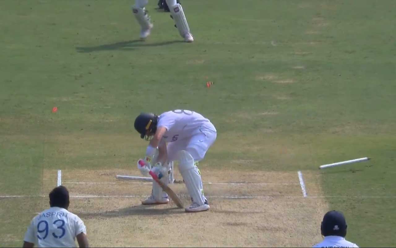 විශිෂ්ඨ යෝකර් පන්දුවක් යොමු කරමින් එංගලන්ත පිතිකරු ඔලී පෝප්ගේ කඩුල්ල දවා ගැනීමට ඉන්දීය වේග පන්දු යවන ක්රීඩක ජස්ප්රිට් බුම්රා අද(3) සමත් වුණා.
