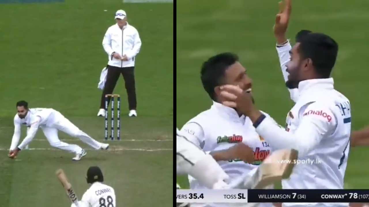 Watch : ධනංජයගේ විශිෂ්ඨ පන්දු රැකීම හමුවේ කොන්වේ දැවී ගිය හැටි