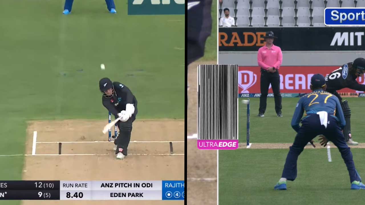 කසුන් රාජිත යොමු කළ දෙවැනි පන්දුවාරයේ දී ෆින් ඇලන් මුහුණ දුන් පන්දුවක් කඩුල්ලේ දැවටී කඩුලු රකින්නා අතට ඇදී ගිය සිදුවීමක් මේ වන විට බොහෝ දෙනෙකුගේ අවධානය දිනා ගැනීමට සමත්ව තිබෙනවා.