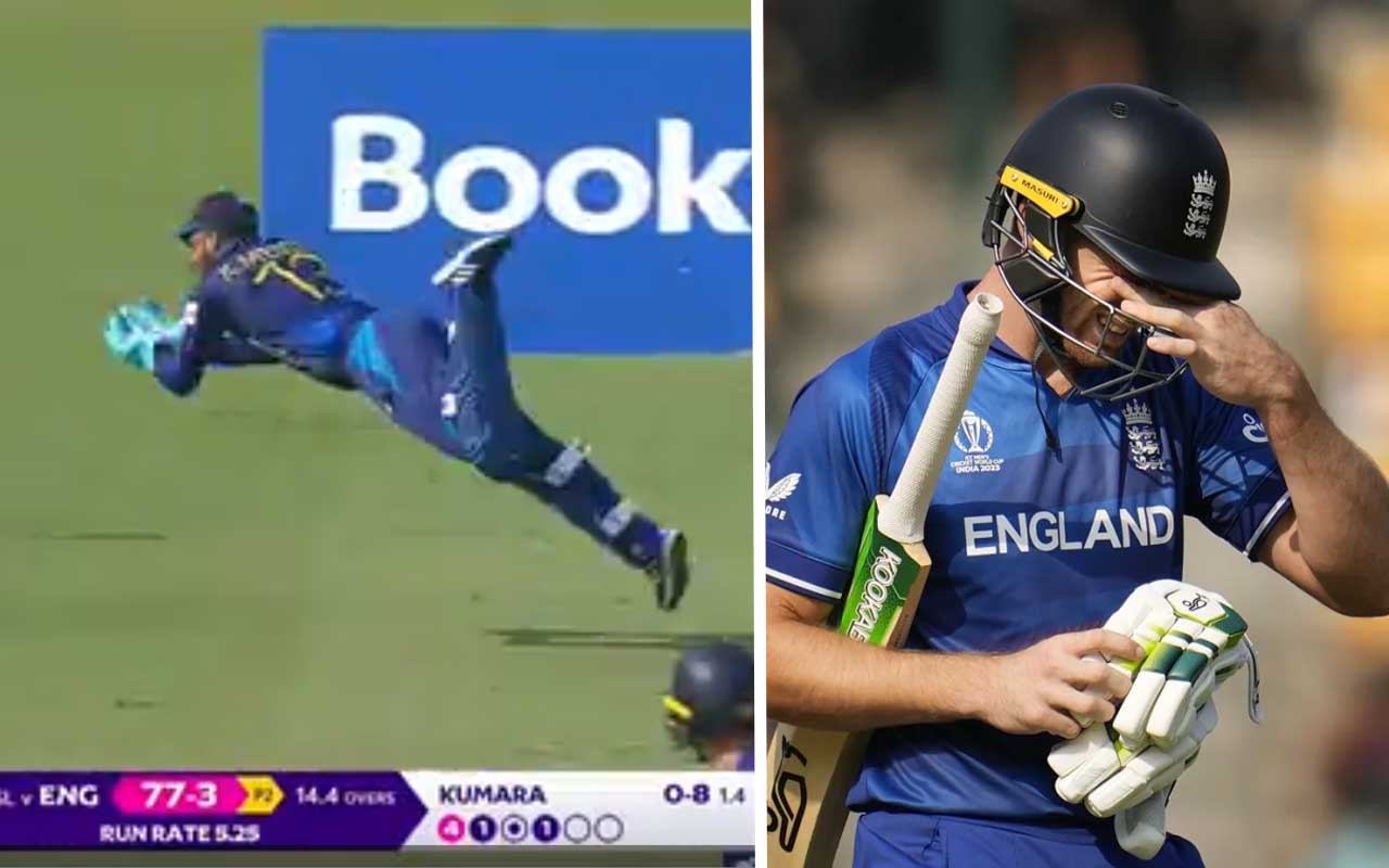 එංගලන්ත නායක ජොස් බට්ලර් දවා ගැනීම සදහායි ඔහු මෙම සුපිරි උඩ පන්දුව රැක ගත්තේ.