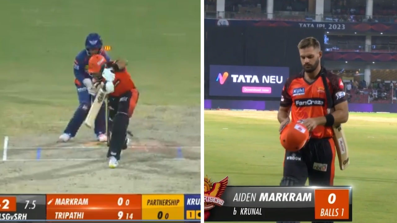 මෙවර ඉන්දීය ප්රිමියර් ලීග් ක්රිකට් තරගාවලිය යටතේ තමන් මුහුණ දුන් පළමු පන්දුවෙන්ම දැවී යාමට සන්රයිසස් හයිදරාබාද් කණ්ඩායමේ නව නායක ඒඩ්න් මාක්රම්ට අද (7) සිදු වුණා.
